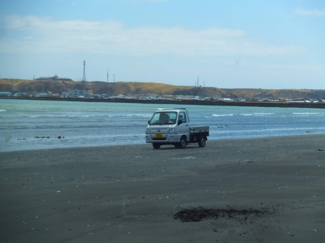 ところが、特定の条件がそろっている砂浜では、埋もれることなく自由に走り抜けることができるのです。石川県にある千里浜なぎさドライブウェイが有名で、『日本で唯一!』『世界に3ヵ所しかない』というキャッチフレーズで書かれているのをよく見かけますが、実は、今回訪れた浜中町なぎさのドライブウェイも車で走ることができるらしい。