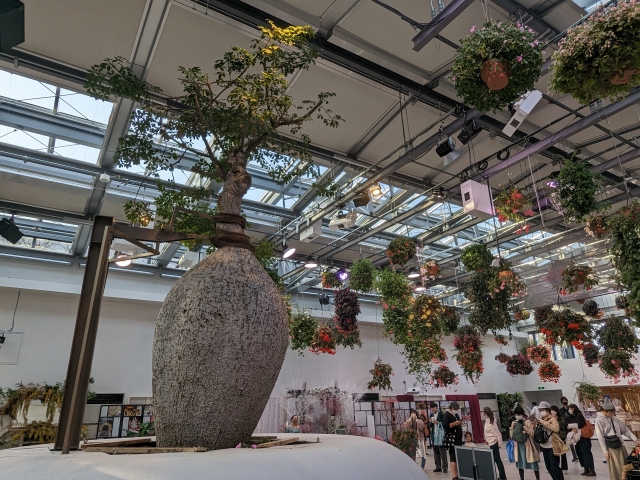 館内に鎮座するのは推定樹齢は400年のシンボルツリー、パラボッチョ。パラグアイ原産の樹木で、花瓶みたいな不思議なカタチ。「トックリキワタ」「ボトルの木」という名で呼ばれることもあります。