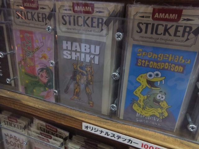 こちらはステッカーコーナー。スポンジハブ、HABU SHIKI、ハブッ娘・・・パロディが効いてて遊び心満点です。