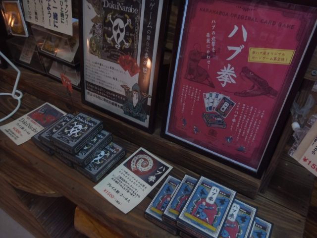 オリジナルカードゲームもありました!ハブからの攻撃をただひたすらかわすゲーム『ハブ拳』や、誰よりも先に毒蛇の絵柄を揃えるゲーム『ドクナラベ』など、説明を読んでいるだけでもとても面白そう。もし友達との旅行だったら、買って帰って夜のホテルで楽しみたい逸品です。