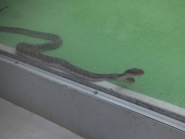 ハブが現れた!!シュルシュルと動くハブは、ヘビ嫌いの方にはかなりハード。ちゃんと透明な壁に囲まれているので安心ではありますが、途中何度か驚かされるのでご注意くださいね。