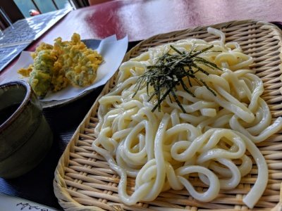ということで、乗船券売り場のレストハウスへ。榛名湖名物のワカサギが食べたかったので、ワカサギ天ざるうどんで朝ごはん。揚げたての天ぷらとコシのあるうどんがたまらない美味しさ!