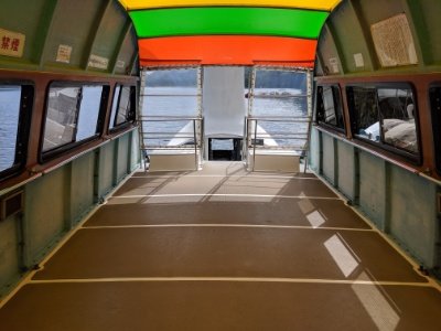 はくちょう丸の1階は座席タイプ。屋内になっているので、寒い日でも安心です。