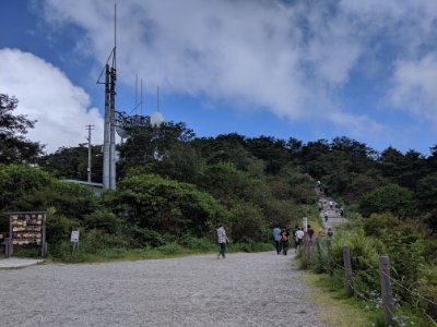 ロープウェイの榛名富士山頂駅を降りると、榛名山頂への道が続きます。山麓よりも気温が低いので、夏場でも羽織るものがあった方が良さそう。