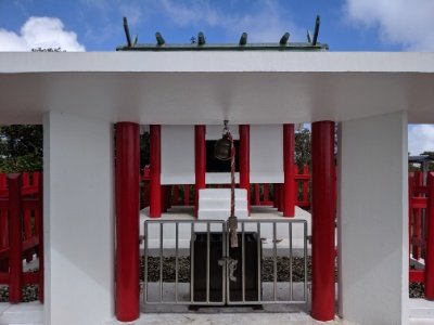 山頂駅から10分ほど歩くと、白と赤のコントラストがくっきりした富士山神社が姿を現します。木花咲耶姫をまつり、縁結びと安産のご利益があるそうです。