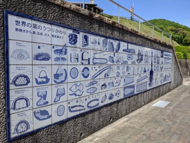 世界の窯のうつりかわりを記したパネルも展示されています。案内板は全て陶板というのも、やきものの産地ならではのポイントです。