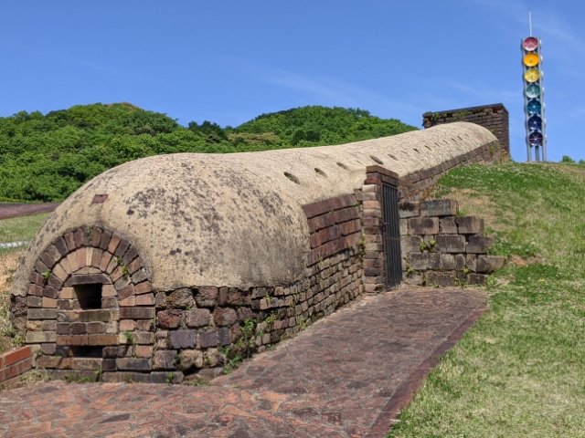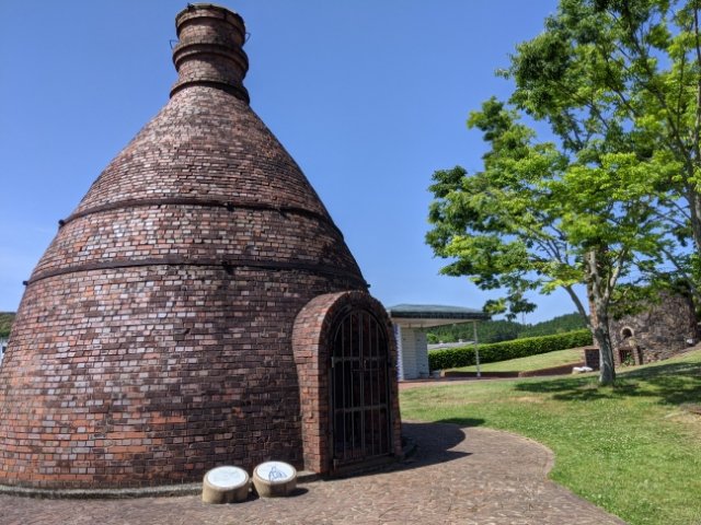 不思議なカタチの窯は、ボトルオープンというイギリスで使用されていた石炭窯。まるでとっくりのような滑らかな見た目から「徳利窯」という名でも呼ばれています。