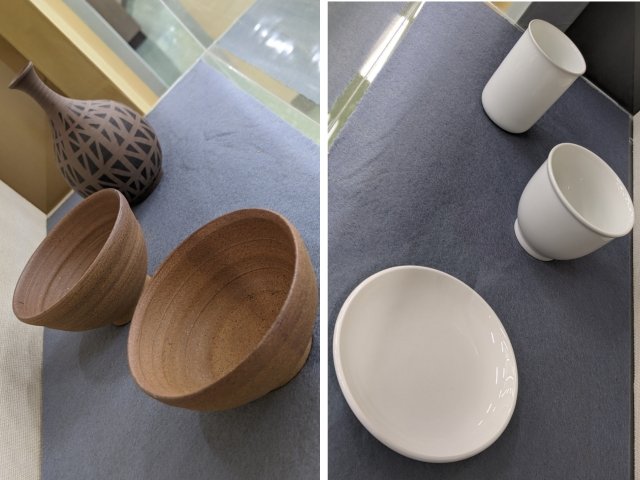陶磁器の美術館や博物館に行く際は、陶器と磁器の区別を知るだけでも内容への理解が深まります。様々な違いがありますが、一番大きな点は材料。「陶器(写真左)」は土の粘土から作られていますが、「磁器(写真右)」は石の粉から作られています。