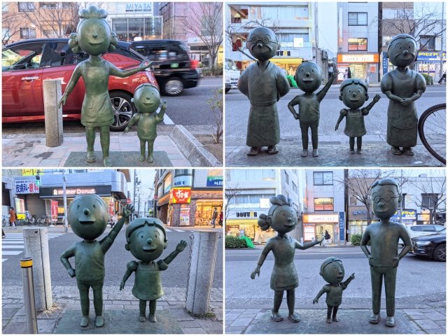 階段を登った先には、サザエさんファミリーの銅像が勢ぞろい!3ヶ所全て、それぞれ異なる組み合わせの像が設置されています。