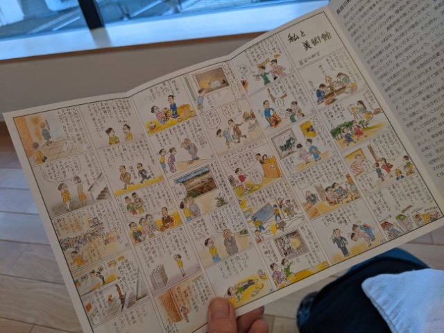 入館時にいただけるパンフレットの裏側には、長谷川町子さんが美術館開設にいたった経緯を描いた漫画「私と美術館」が掲載されています。こちらを読んでから展示品を見ると、また少し違った気持ちで見ることができるのではないでしょうか。