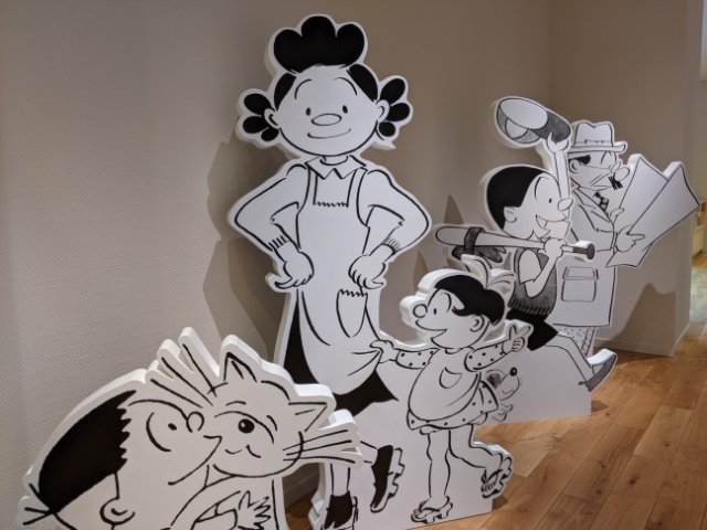 入口ではサザエさん、エプロンおばさん、いじわるばあさんという長谷川作品3大キャラクターが勢揃い。それぞれ別の作品ですが、3人そろって立ち話している姿は凄く馴染んでます。
