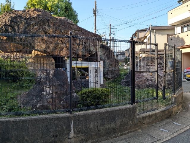 たどり着いた蛇塚古墳。住宅に囲まれた土地であり、フェンスに囲まれています。
