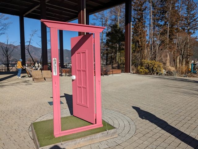 ピンク色のどこでもドアは、開けるとちょうど富士山が見える位置。上手く工夫すると面白い写真が撮れます。