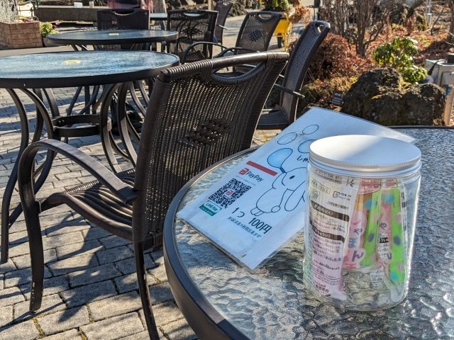 園内随所にはケースに入れられたシャボン玉が置かれています。そばにはQRコードが置かれており、PayPayとLINE Pay限定で100円にて購入可能。先ほどのフォトスポットと組み合わせると、ファンタジックな写真が撮影できます。
