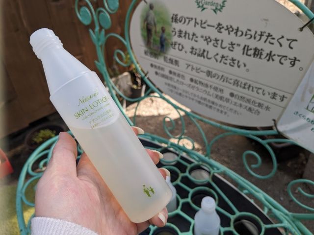 そして、なんとナチュラル化粧水も様々なところに配置されています。アトピーをやわらげたいという思いで生まれたという化粧水で、敏感肌や乾燥肌に効果があるそう。