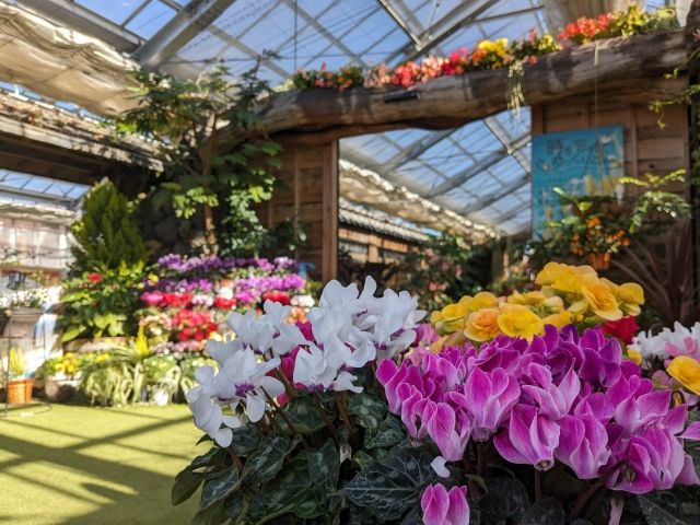 園内にある温室では、様々なハーブを栽培中。華やかな熱帯植物や多肉植物もそろっており、見応えのあるポイントです。
