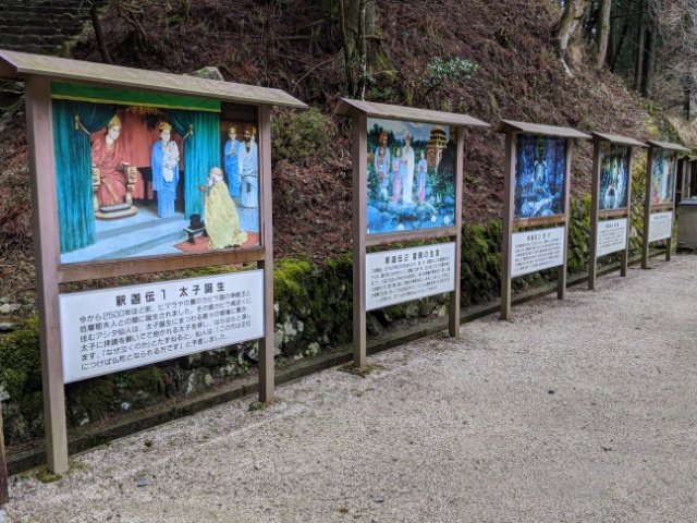 隣には釈迦伝のイラスト付きの解説パネル。とってもわかりやすいストーリーなので、予備知識が無くても理解しやすいです。
