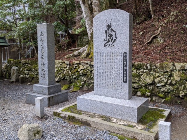 元三大師は現在の伝わるおみくじの創始者といわれています。そのため、この元三大師堂には「おみくじ発祥之地」の石碑が建てられています。