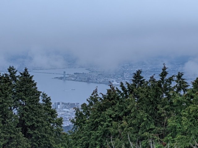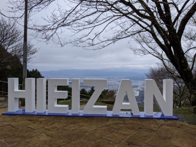 とても眺めが良く、琵琶湖と大津市街を見渡すことができます。雲がかかっていますが、もし晴れていたらどれほど遠くまで見えるのでしょうか。ここには比叡ガーデンミュージアムがありますが、冬場のため開いていませんでした。