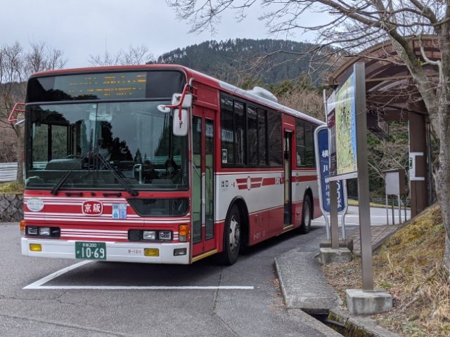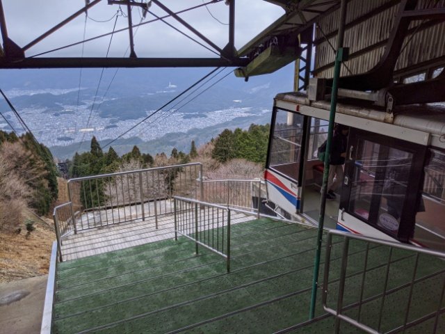 バス停《横川》からシャトルバスに乗り、比叡山頂へ。そこからロープウェイ、ケーブルカー、徒歩、鉄道と、いくつもの交通手段を使って京都市内へと戻ります。