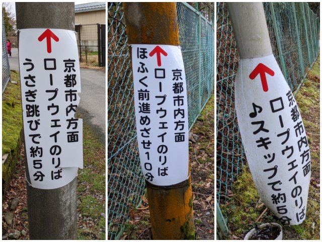 バス停《比叡山頂》から歩いてロープウェイ乗り場へと向かいます。約7分の道のりですが、途中の看板がユーモアたっぷり。