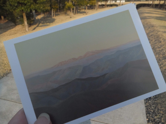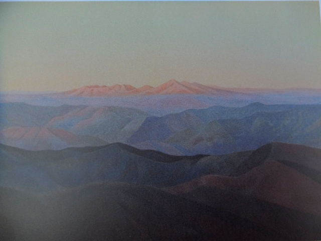 『残照』に描かれた壮大な景色は、千葉県君津市の鹿野山(かのうさん)。高い山の少ない千葉県にもこんなにも深い山々があるのですね。アクセスも悪くないので、そのうち行ってみようかな。