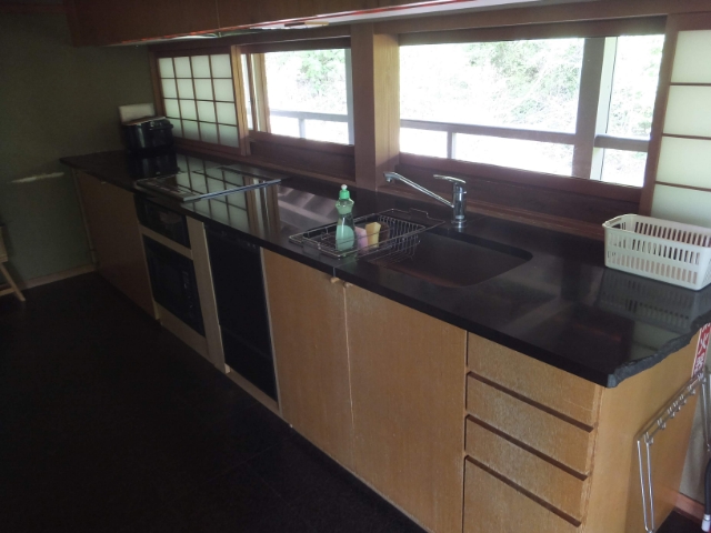館内にはキッチンも完備しています。IHの調理器具、炊飯器、冷蔵庫と一通り揃う設備。基本的に素泊まりであるため、食事は持参するかここで自炊するかのいずれかになるようです。