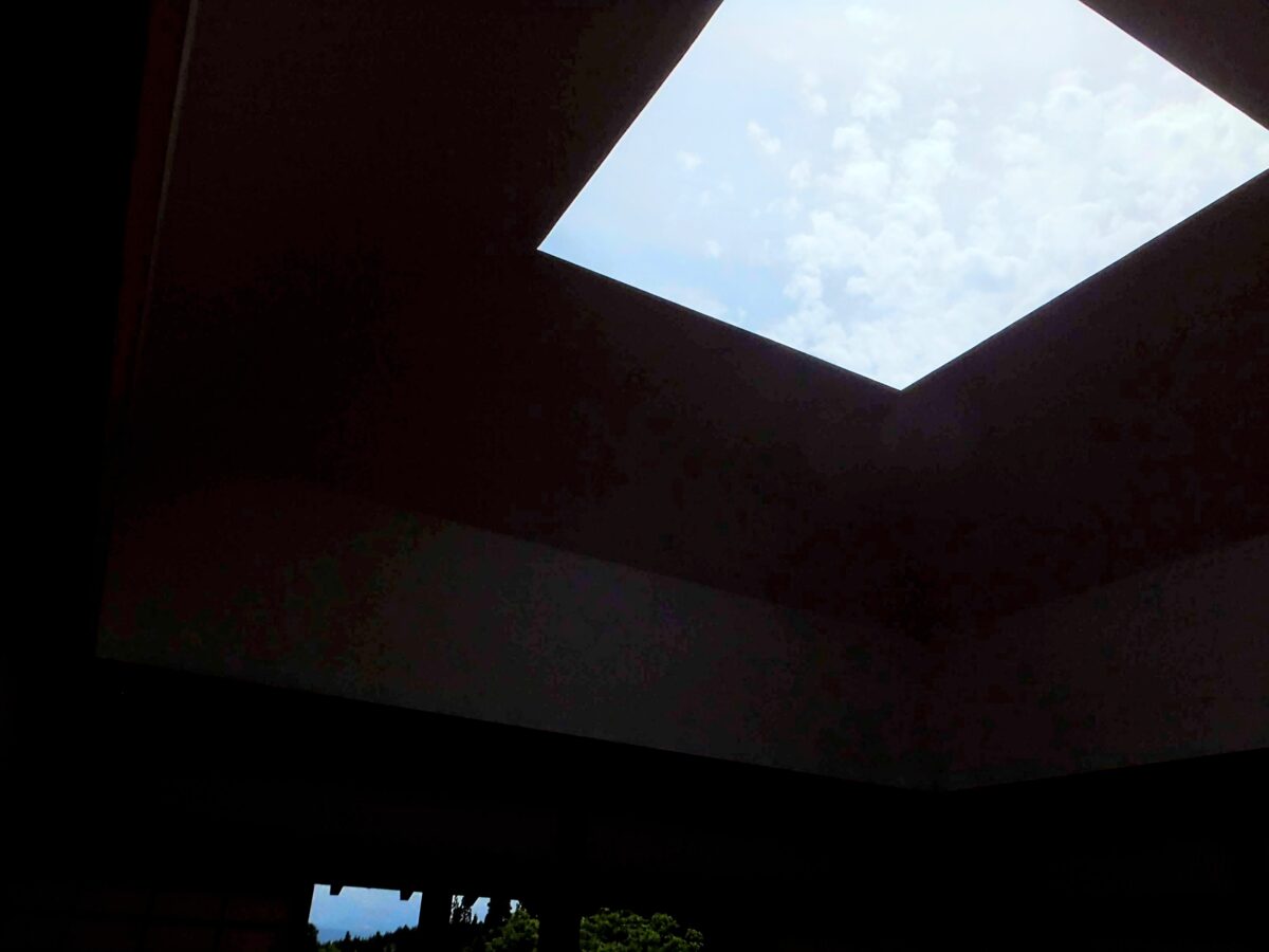 さてさて、この光の館で一番の見どころといえばなんといっても《Outside In》。12畳の和室に設置されたこの作品、壁のスイッチを操作すると屋根が動き出しました!!!