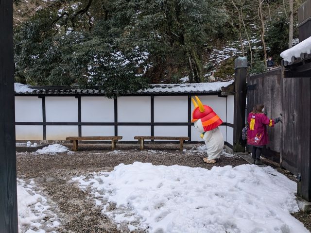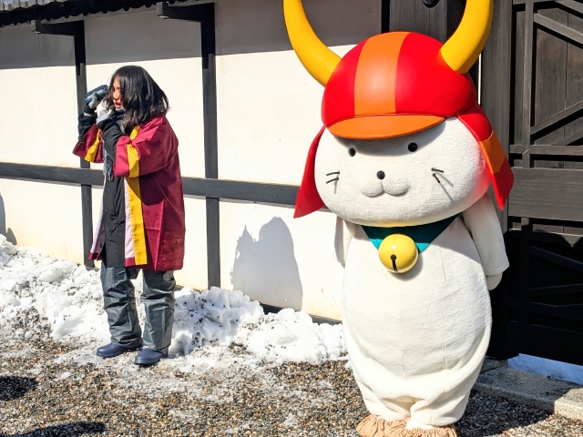 さてさて、そんな彦根城ですが運が良いと「ひこにゃん」が登場します!今回はお城の入場券売り場の目の前の広場にて、13:30の回に出会うことができました!まわりの人にぺこぺこしている様子がかわいすぎます。