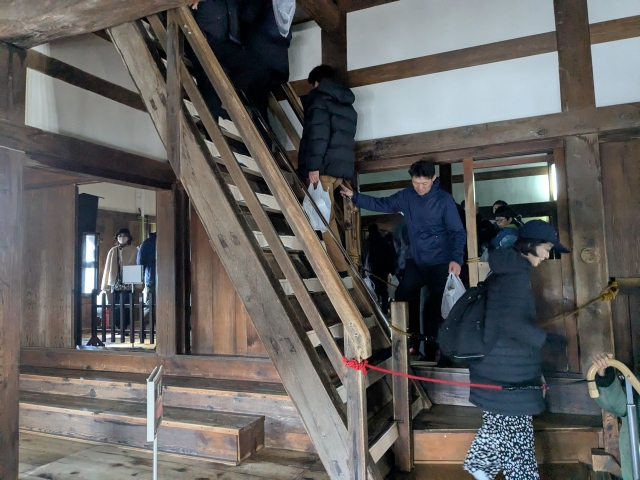 さてさて現存天守名物といえば、こちらの急な階段。
