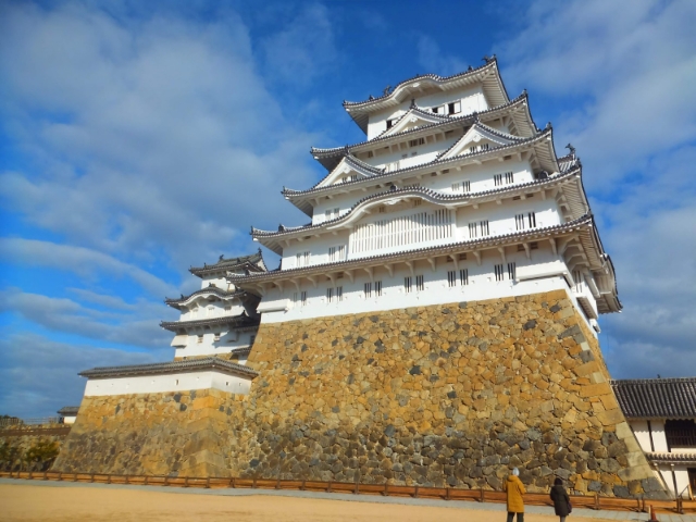 どこまでも真っ白な姫路城の天守閣の別名は「白鷺(しらさぎorはくろ)城」。2015年には6年に渡る「平成の大天守保存修理」が無事竣工。その白さがさらに増し、一部では「白すぎ城」とも呼ばれるようになります。