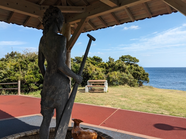 海に向かうように立つ像。こちらは前々回の枕崎駅の記事でもちらっと触れた山幸彦の像です。実はこの枕崎は「海幸・山幸」の物語のゆかりの地でもあります。