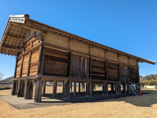 法隆寺綱封蔵を参考に土壁と茅葺で再現された最大級の建物。郡衙において中心的で巨大な正倉は土壁構造が多いため、壁板に土を塗った土壁によって復元されました。そのため、土倉と呼ばれています。