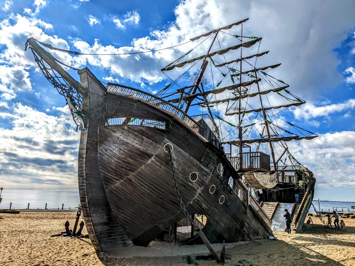 お気づきの方も多いとは思いますが、この難破船は実は公園遊具であり、自由に登って遊ぶことができます。大人が見てもワクワクしてしまう難破船、子どもたちは目を輝かせて走り回っています!