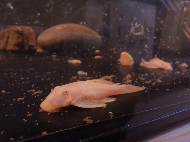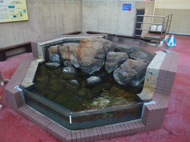 うみがめ博物館という名称ですが、コバンザメやカゴカキダイといったウミガメ以外の海水魚や熱帯魚も飼育されています。こちらの水槽には白いプレコがたくさん!もぞもぞと蠢いており、ちょっとだけゾクゾクします。