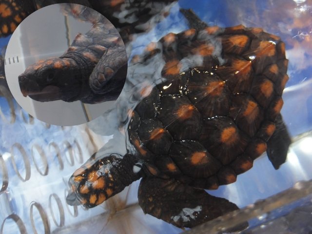 それに対して、アカウミガメは赤と黒のカラーリング。さらにゴツゴツとした甲羅が子供ながらに強そうなルックス。