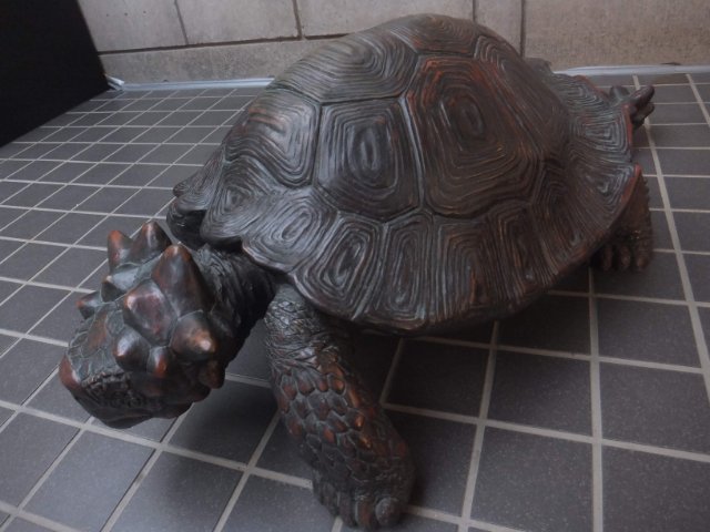 こちらも古代の陸亀メイオラニア。頭に角があり、まるでアンキロサウルスなどをはじめとした曲竜のようなフォルム。オーストラリアのロードホウ島から発見され、全長は2mとかなり大型のカメです。
