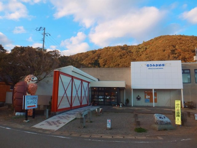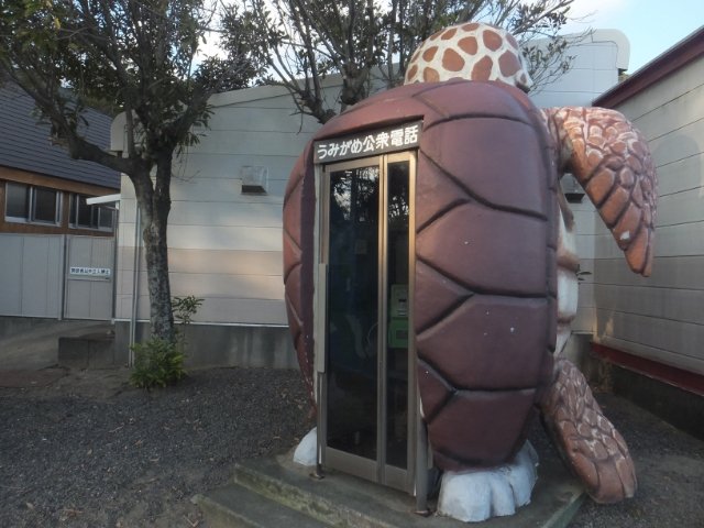 博物館の目の前には、こんなウミガメ公衆電話もあります。カメの背中に入る感じが、とってもわくわくしま