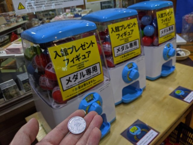 なお、入館時にメダルが1枚もらえます。これで館内のガチャガチャを1回だけ回すことができるのです。何が出るかわからないタイプのガチャガチャなので、どきどきわくわく!ちなみに私が当たったのは航空自衛隊の飛行機でした。