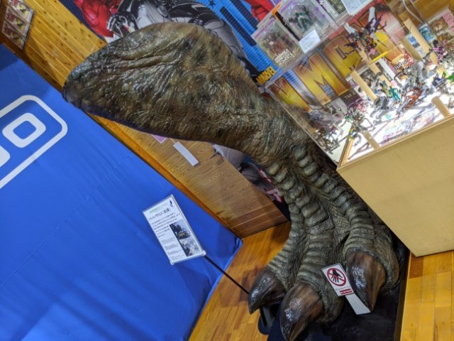 海洋堂の高い造形技術はフィギュア作成だけには収まりません。唐突に現れるティラノサウルスの脚。こちらはなんと映画ジュラシックパークの撮影に関わったもの。映画スタッフはこちらの模型をCG制作の資料として使用したそうです。