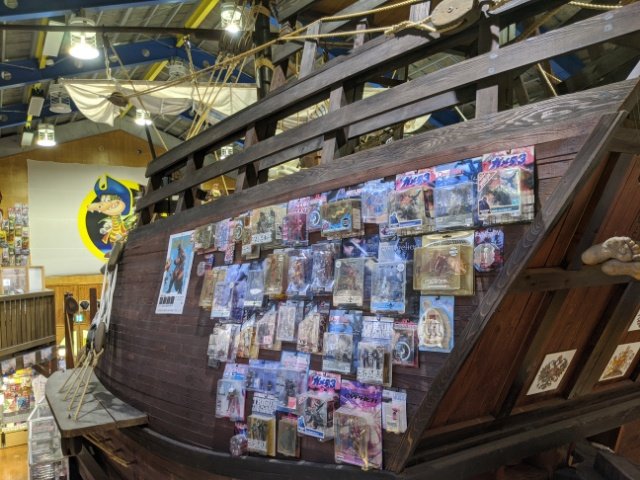 やがて、海洋堂はチョコエッグやボトルキャップなどのおまけフィギュア・食玩(食品玩具)を手掛ける様になります。海賊船の船内にはそんな作品がびっしり。まるで昆虫標本のようにずらりと並んでおり、見ごたえ抜群です。