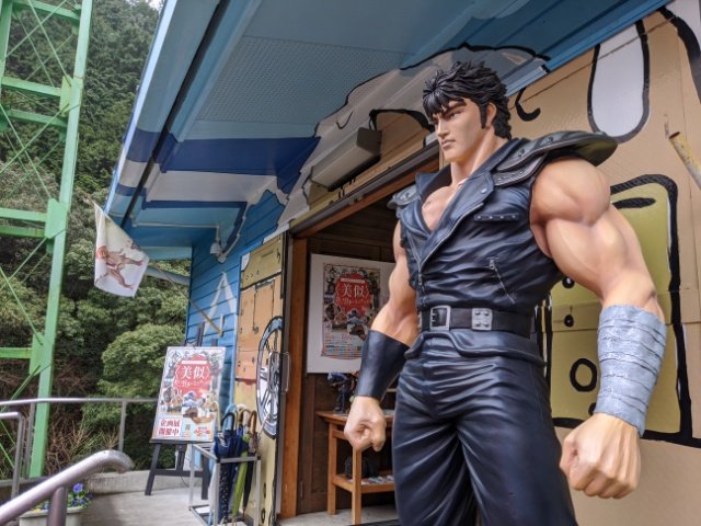 入口で来場者を待ち受けるのはは北斗の拳のケンシロウさん!セキュリティはあまりにも完璧です。