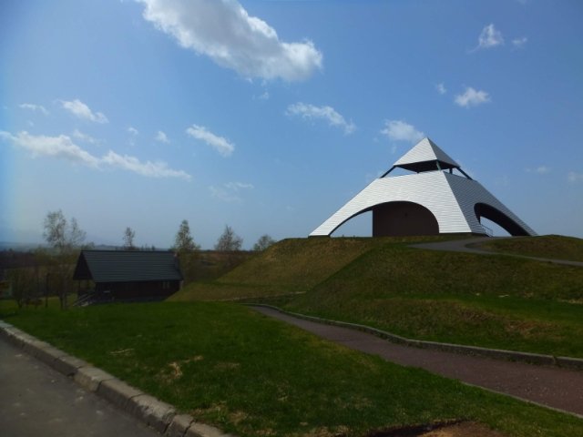 北西の丘に建つ印象的なピラミッド。その正体は美瑛を見渡す展望台!360°広がるパノラマは、季節によって様々な姿を見せてくれます。近くの売店で販売している「北あかり」を使用したコロッケはとっても美味です。