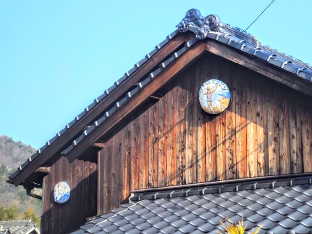 青、黄、灰を中心としたカラフルな板で彩られた家。よくみると木や鳥が描かれています。こちらの家は、先ほど述べた「咸臨丸」の水夫の生家なのです。