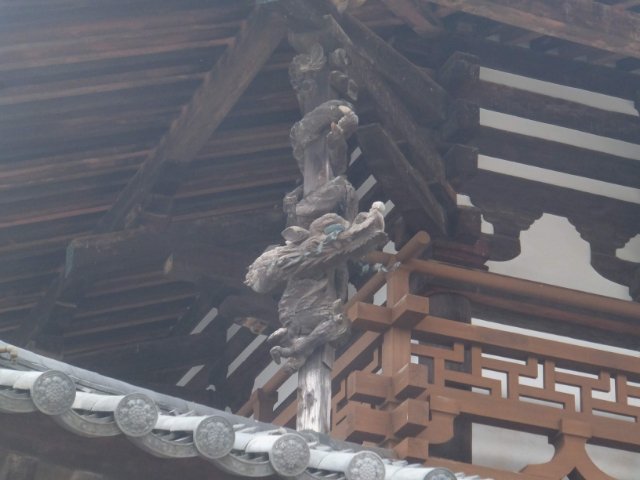 金堂も五重塔と同じく、よく見ると様々な彫刻が施されています。四本の柱には、昇り龍と下り龍がそれぞれ巻き付いています。