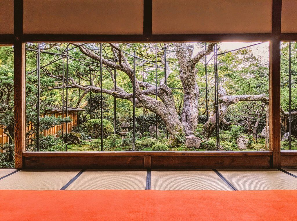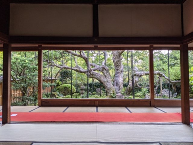 この松は樹齢700年といわれています。宝泉坊として開かれたのが室町時代後期(1500年頃)とすると、当時の樹齢は200年ほど。まだそれほど大きな松ではなかったんじゃないかな・・・。そう考えると、今の時代だからこそこれほどの景色が楽しめるんだろうなぁ、と何だか感慨深い気持ちになってきました。