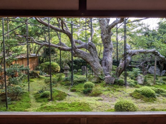 宝泉院を代表するのがこちらの盤桓園(ばんかんえん)という庭園。柱と柱を額に見立てて鑑賞するため、「額縁庭園」とも呼ばれています。好きな角度で切り取って写真に収めてみるのも楽しいです。