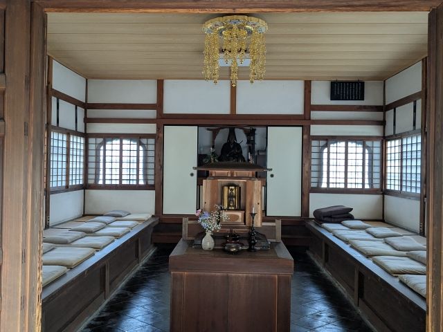 芳春院は前述の通り非公開ですが、庭園から龍泉庵を覗くことができます。中に入ることはできませんが、坐禅堂には厨子の中に安置された仏像の姿が。
