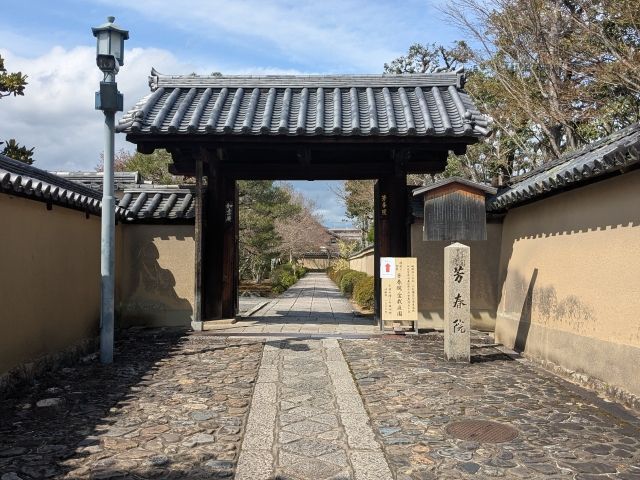 大徳寺の塔頭であり、最も北に位置する芳春院。慶長13年(1608年)に玉室宗珀(ぎょくしつそうはく)を開祖として加賀藩前田家の祖・前田利家の夫人・松子(まつ、芳春院)が建立した寺院です。