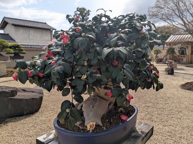 「30 豊後椿」も上品な花を咲かせていました。樹齢はなんと200年!もしかして日常で良く見かける花壇のツバキよりもずっと年上なのでしょうか。